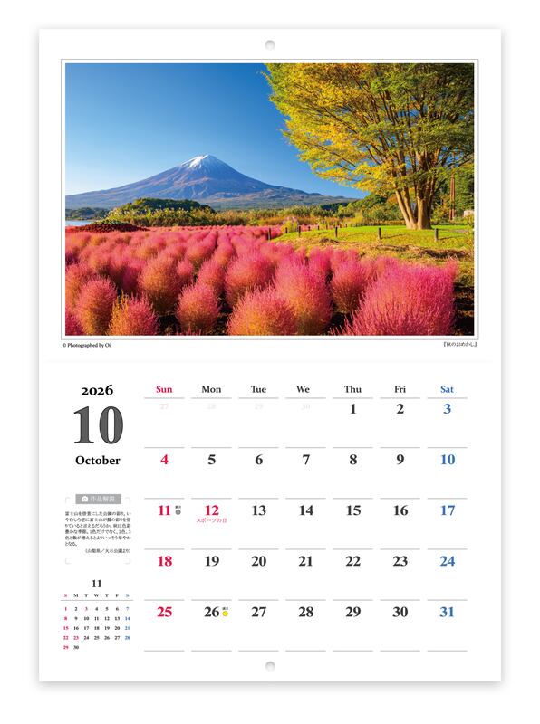 富士山写真家 オイが撮影・制作する2026年版カレンダーです。