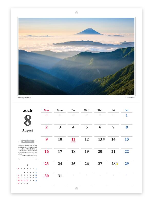 富士山写真家 オイが撮影・制作する2026年版カレンダーです。