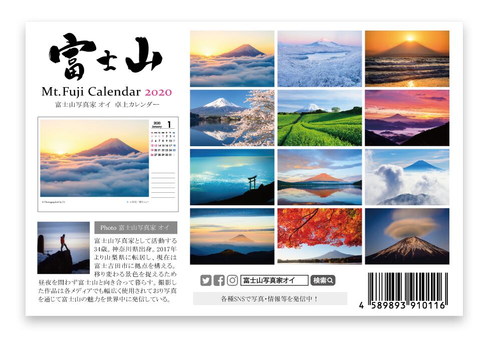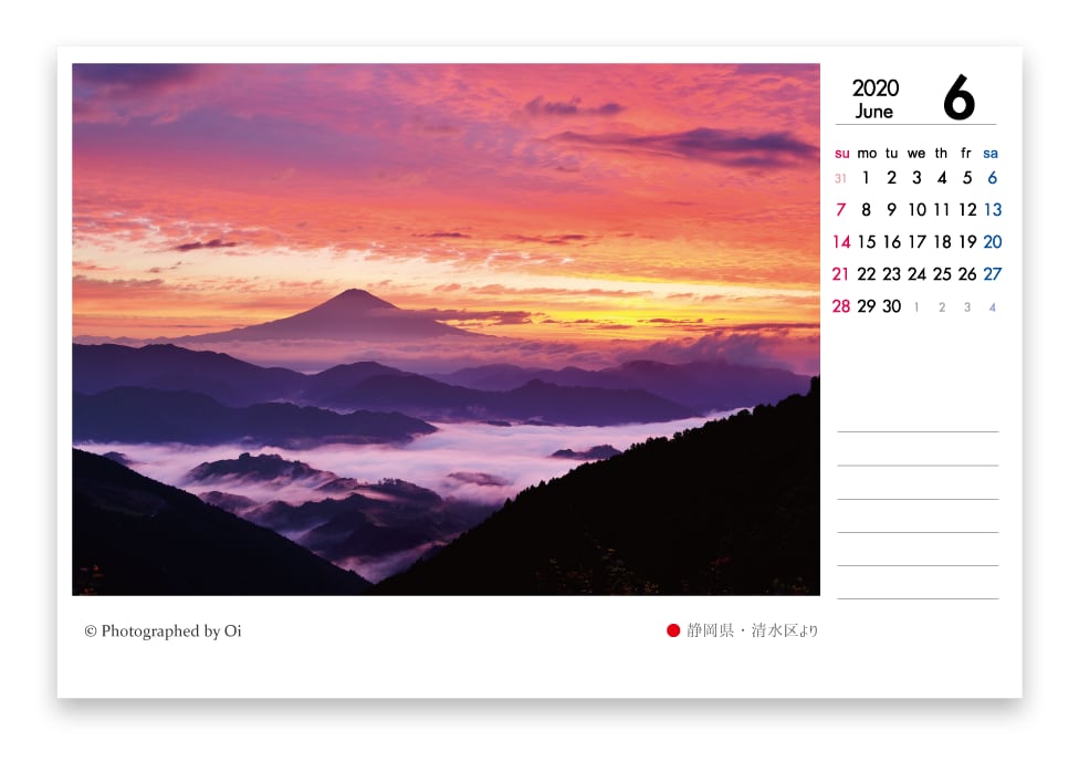 富士山写真家 オイが撮影・制作する2020年版カレンダーです。