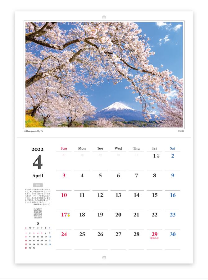 富士山写真家 オイが撮影・制作する2022年版カレンダーです。