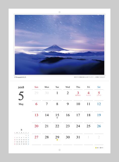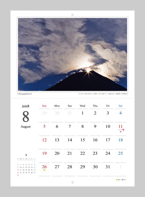 前年より販売スタートとなった「富士山写真家オイ・オリジナルカレンダー」の壁掛けタイプです。